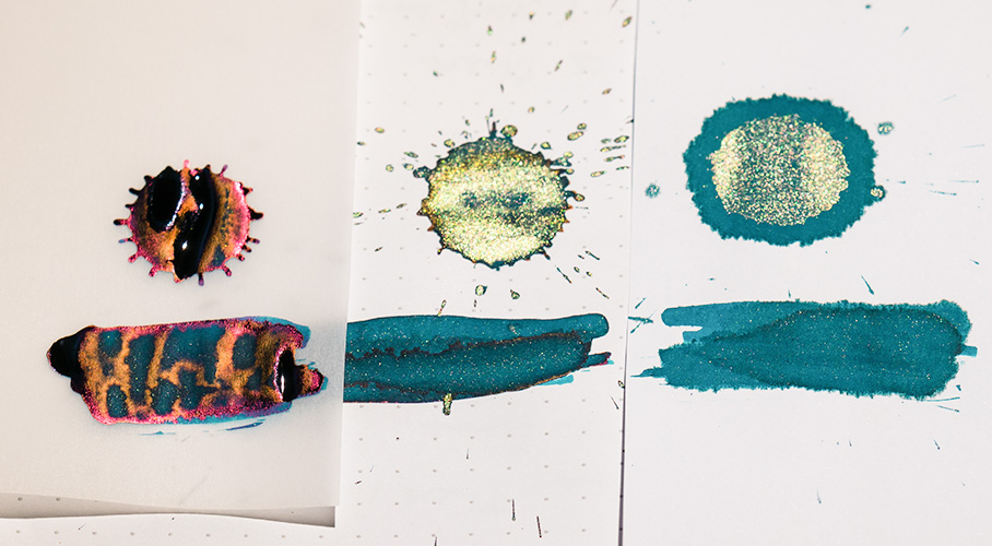 Der Sheen kommt NUR wenn die Tinte ordentlich aufgetragen wird. Daher sind EF, F oder manche M-Federn dafür nicht unbedingt geeignet (kommt darauf an wie großzügig der Tintenleiter ist). Mit B-Federn oder Stubs bekommt man die besten Ergebnisse.