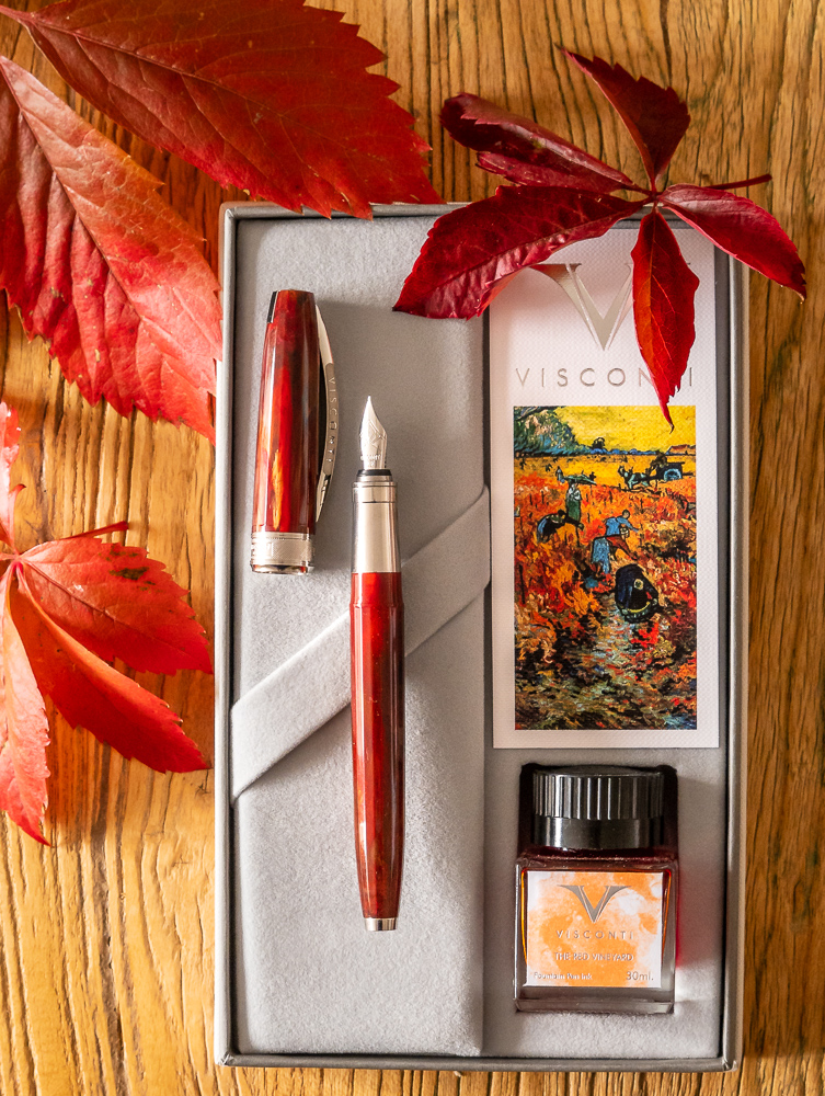 Auch dieses Modell wird von Visconti wieder im Set angeboten, kombiniert mit einer speziellen Tinte. Im Hintergrund ziert die Set-Verpackung das gleichnamige Bild von Van Gogh: