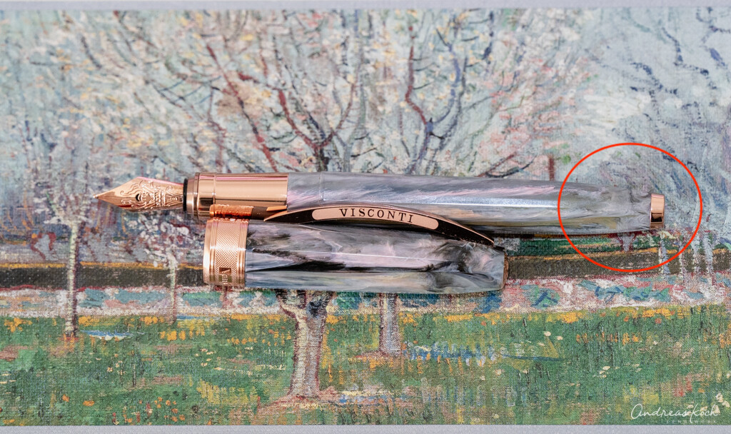 Der Van Gogh "Orchard in blossom" stellt eine Besonderheit innerhalb der Modellreihe dar: es ist bislang das einzige Modell der Serie, bei dem Visconti Rosegold eingesetzt hat.