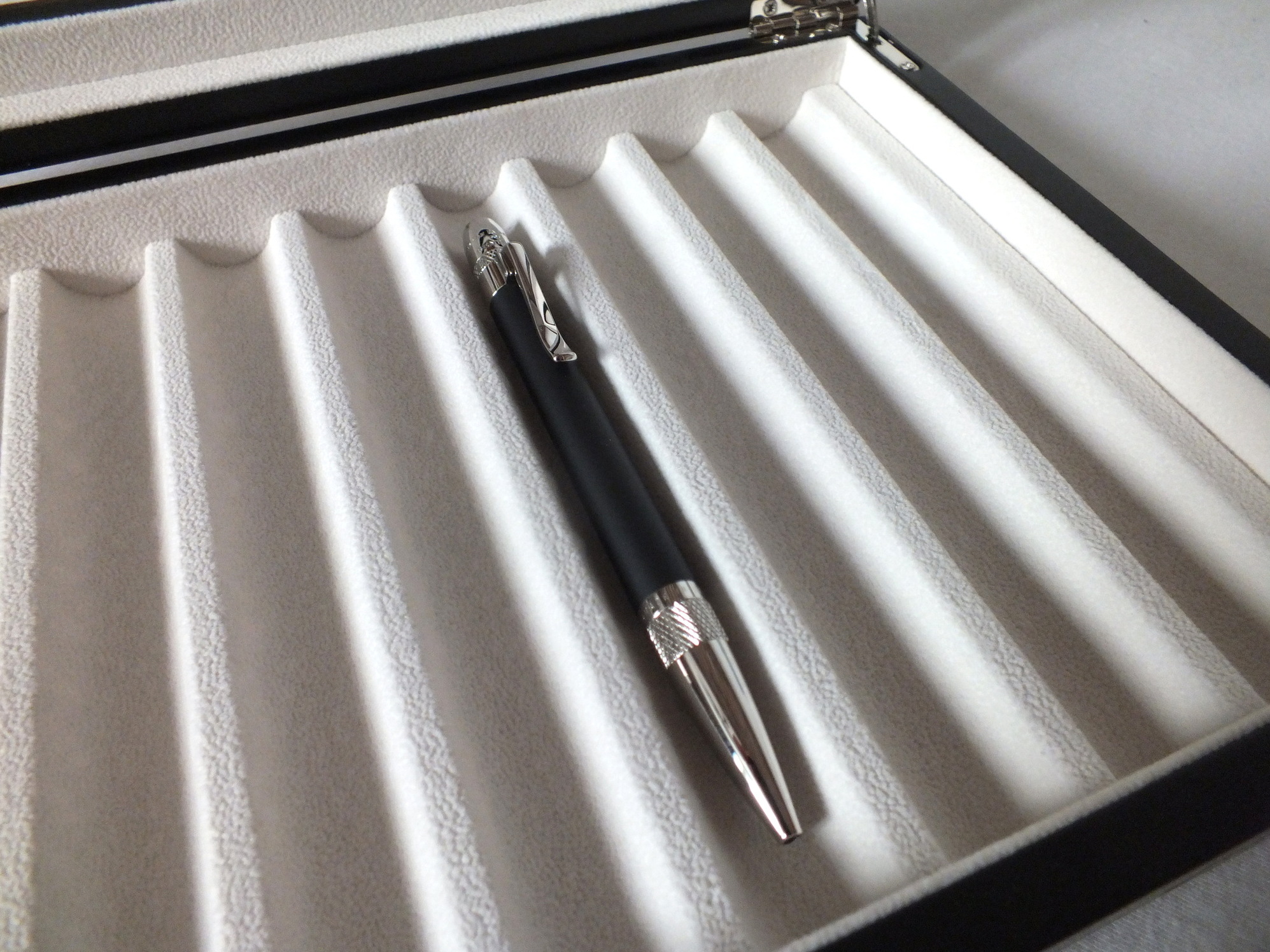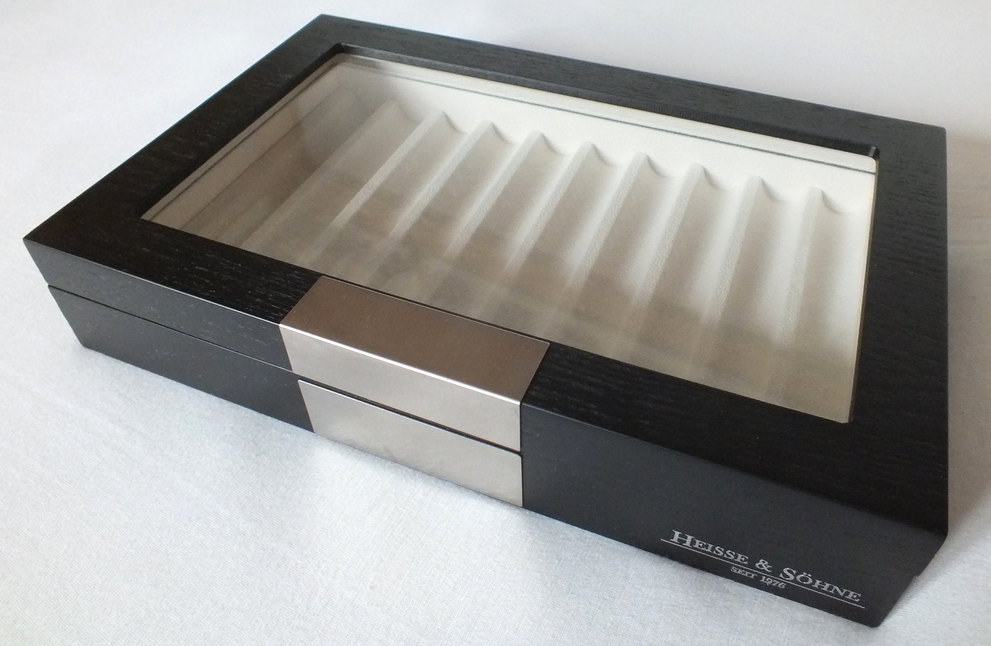 Ähnlich wie ich, bist du bei den Schreibgeräten ein Fan der Kombi Schwarz & silbernes Metall — da ist es optimal, wenn die Schatulle dazu passt. Und wenn farbige Blickfänger z.B. aus Italien einziehen sollten, sind sie optisch ebenfalls gut untergebracht