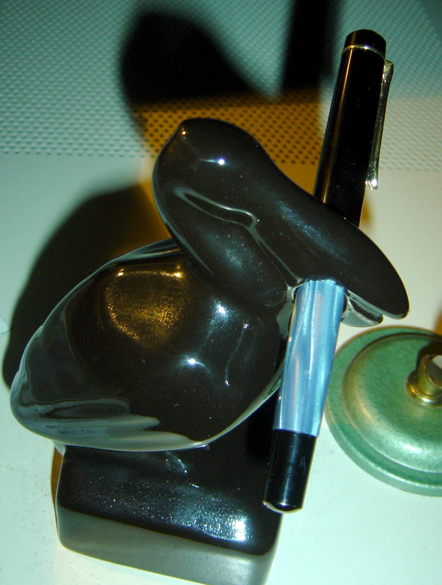 mein großer vogel trägt keinen füllhalter im schnabel. aber ich denke, eventuell auftretende kratzer sind von normalen gebrauchsspuren ("deskdiving") nicht wirklich zu unterscheiden - dies allerdings ohne es zu wissen. aber vielleicht hat jemand hier langzeiterfahrungen mit einem "vogel im schnabel".