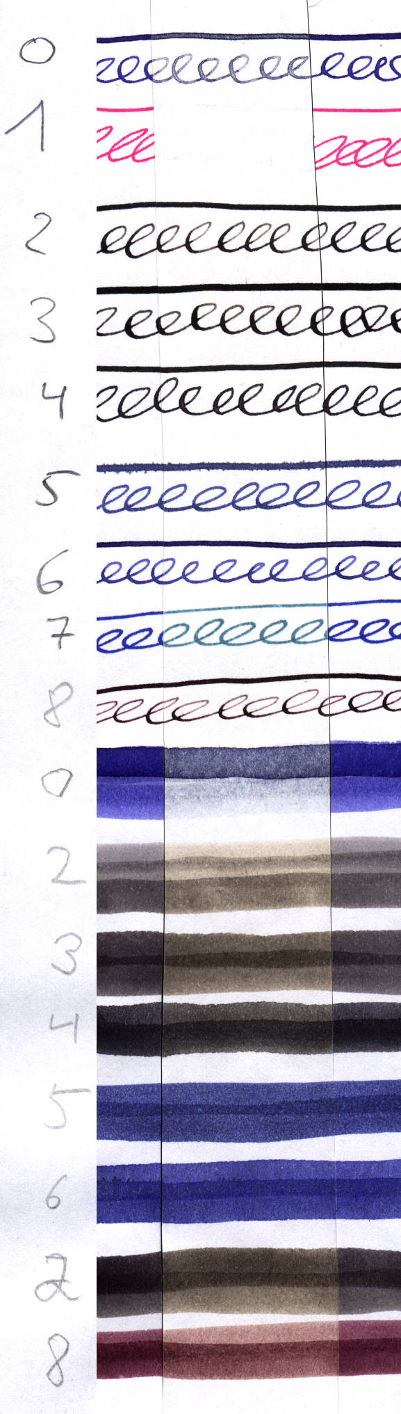Also die Preppy Pink ist ein Geist, die würde ich nur zum Nichtschreiben verwenden. (auf dem Scan ist darüber Königsblau)
