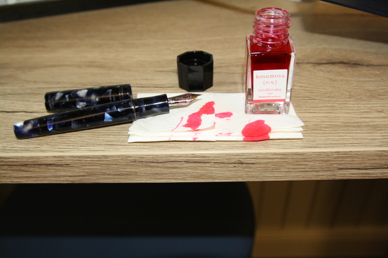 Nun habe ich im Juli erfahren, dass ich die Prüfung bestanden habe und war jetzt im Oktober wieder in Straßburg. Wieder zum Patentanwaltskurs. Mit dem Unterschied, dass ich mich dort jetzt auf der anderen Seite des Pultes wiedergefunden und selbst angehende Europäische Patentanwälte unterrichtet habe. Und natürlich musste ich einmal zu "Monogramm". Im strömenden Regen, aber egal. Was ich dort zum ersten Mal in meinem Leben gesehen habe, war eine Zapfanlage für Tinte! Ich glaube, es waren sechs Tinten von J. Herbin, die dort aus großen Behältern abgefüllt werden konnten. Aber weil ich mit von J. Herbin schon mehrmals enttäuscht war, habe ich dort nicht zugeschlagen, sondern bei der Kult-Marke der letzten Jahre: Iroshizuku. Was ich ja großartig finde ist, dass es die Iroshizuku-Tinten auch in kleinen Flaschen gibt. Das Preis-Leistungsverhältnis ist zwar unterirdisch, aber ich habe ohnehin viel zu viel Tinte und musste wieder einmal zuschlagen. Wenn man dort drei Fläschchen kaufte, bekam man kostenlos eine Schatulle für drei Fläschchen dazu - und da konnte ich nicht widerstehen.