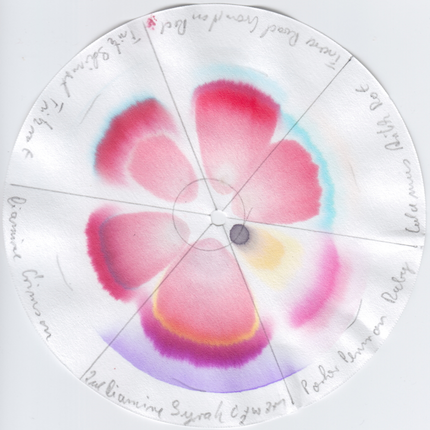 Ich wollte schließlich noch wissen, ob sich die farblich so ähnlichen Tinten in der Komposition der Farben unterscheiden. Daher habe ich sie mal im Vergleich auf einem Blatt untersucht: Gewisse Ähnlichkeiten lassen sich nicht übersehen: Fritz Schimpf Fritzrot, Frara Road Crompton Red und Calamus Antik Rot sind ähnlich einfach zusammengesetzt (was die Farbstoffe angeht), die Diamine Crimson unterscheidet sich auch nicht grundsätzlich davon. Die Diamine Syrah ist (zusammen mit der Penman Ruby) am komplexesten aufgebaut, hat aber denslben "Basis-Rotton". Die Zusammensetzung der Penman Ruby erinnert mich an braune Tinten - vllt ist das dem Alter (aus den 90er Jahren) geschuldet und heute wird dasselbe mit weniger Aufwand erreicht.