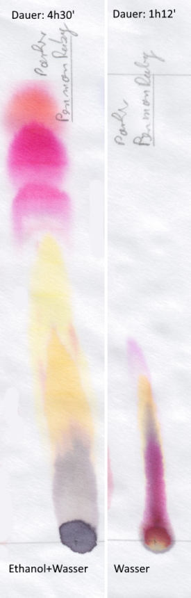 Interessant finde ich noch, das ich mit den anderen Tintenfarben (schwarz, blau, grün) nicht soviel Arbeit hatte - möglicherweise habe ich auch einfach Glück gehabt und gleich die passenden ausgesucht?