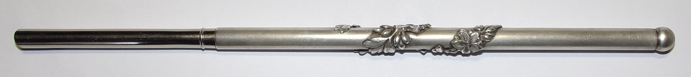 Hab nochmal ganz genau nachgeschaut und leider auch im Muster keine Punze gefunden. Silber kam mir auch in den Sinn (aber ohne Punze), das kann ich fast nicht glauben. Für Blei ist es mir fast zu silberfarben, aber nicht auszuschließen. Wurde aber Blei überhaupt schon mal für Schreibgeräte genutzt, oder vielleicht auch Zinn (aber für Schreibgeräte) grübel grübel…...