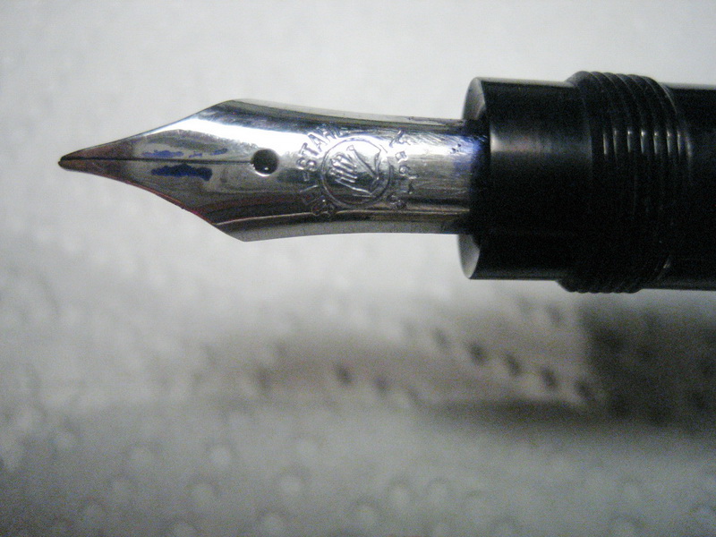 Habe heute zwei(Beim zweiten ist der Tintenleiter kaputt) dieser Sicherheitsfüller gekauft bezeichnet mit "Bonaparte Extra" mit einer Stahlfeder in der Mitte der Feder der Handschuh.