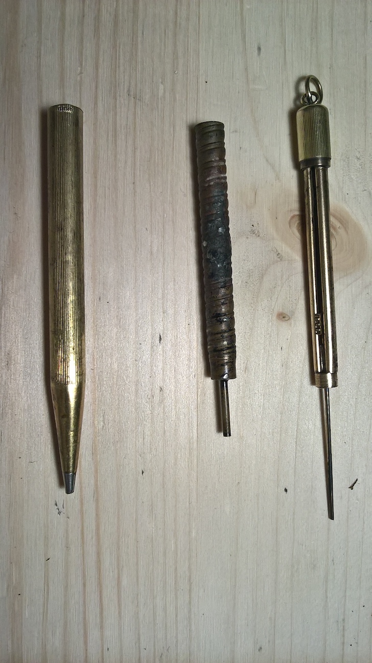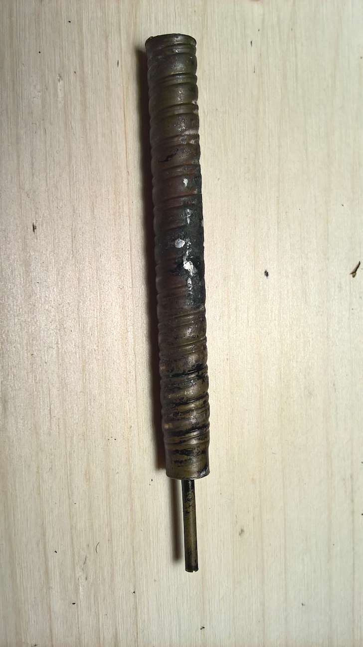 Ich habe die Kammer mit Schraubverschluss für die Ersatzminen gefunden, leider leer. Aber verrückt, dass es vergoldet ist, hätte es echt für Messing gehalten.