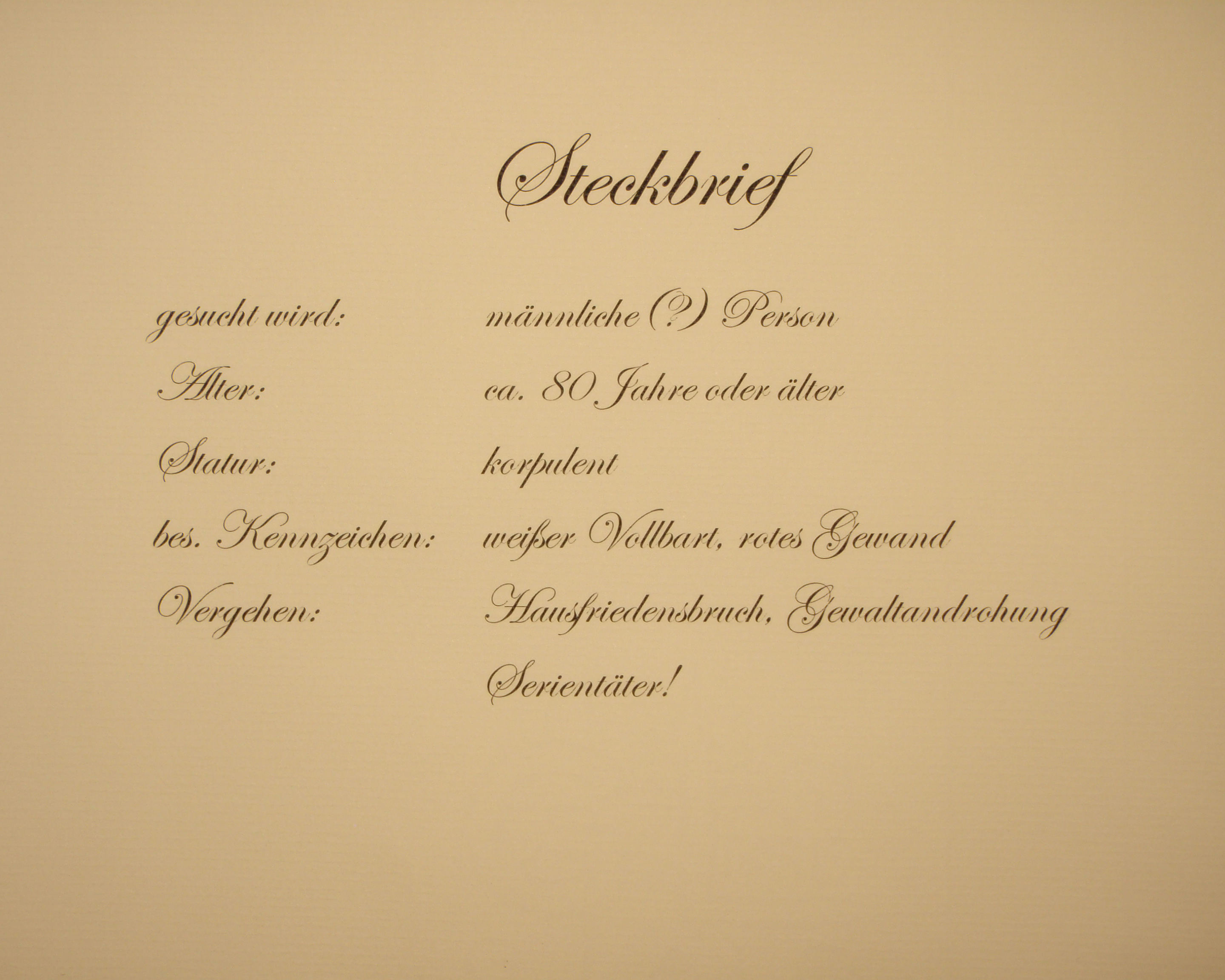 Also ehrlich gesagt, eine Schönschrift ginge schon mit Computer. Und ich glaube auch nicht, dass es Donnie wirklich interessiert.