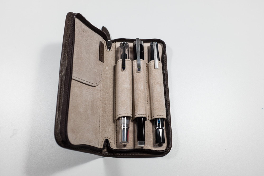 Ich konnte einfach nicht widerstehen und so fand heute das dunkel braune Etui für 3 Schreibgeräte + Visitenkarten zu mir.